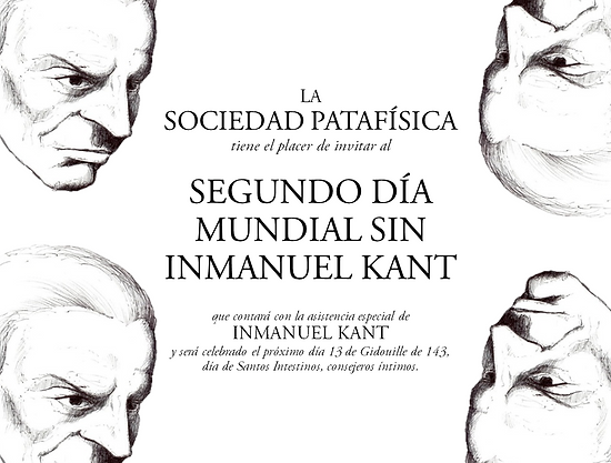 Arriba, derecha (2): Anuncio del Segundo Día Mundial Sin Inmanuel Kant. Como en el anterior caso, Kant fue anulado por las premisas y no pudo asistir al evento.